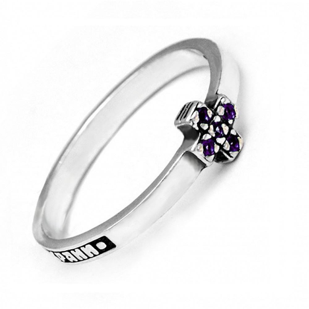Серебряное кольцо с крестиком (сиреневые фианиты, ширина шинки 2 мм) женское "Спаси и сохрани", арт. 18806