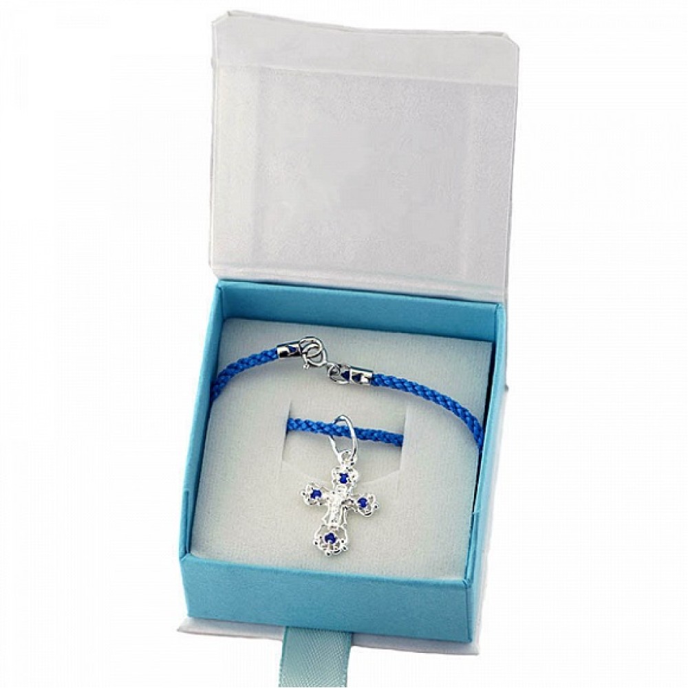 Детский крестик на шнурке мальчику (крестильный набор в коробочке), арт. 18819