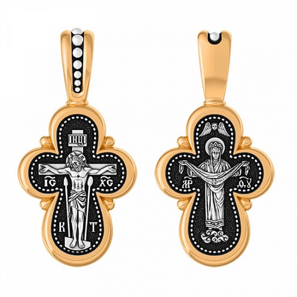 Серебряный крестик с позолотой Покров Пресвятой Богородицы, арт. 294768