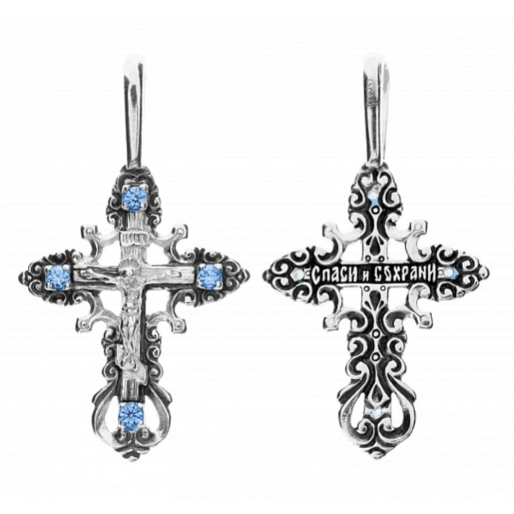 Серебряный крестик с голубыми фианитами (размер без ушка 24х19 мм), арт. 339492