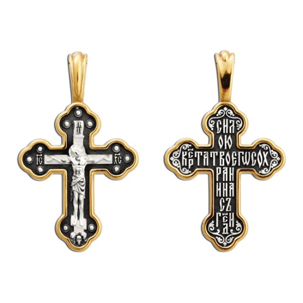 Серебряный крест с позолотой и молитвой "Силою креста Твоего", арт. 294772