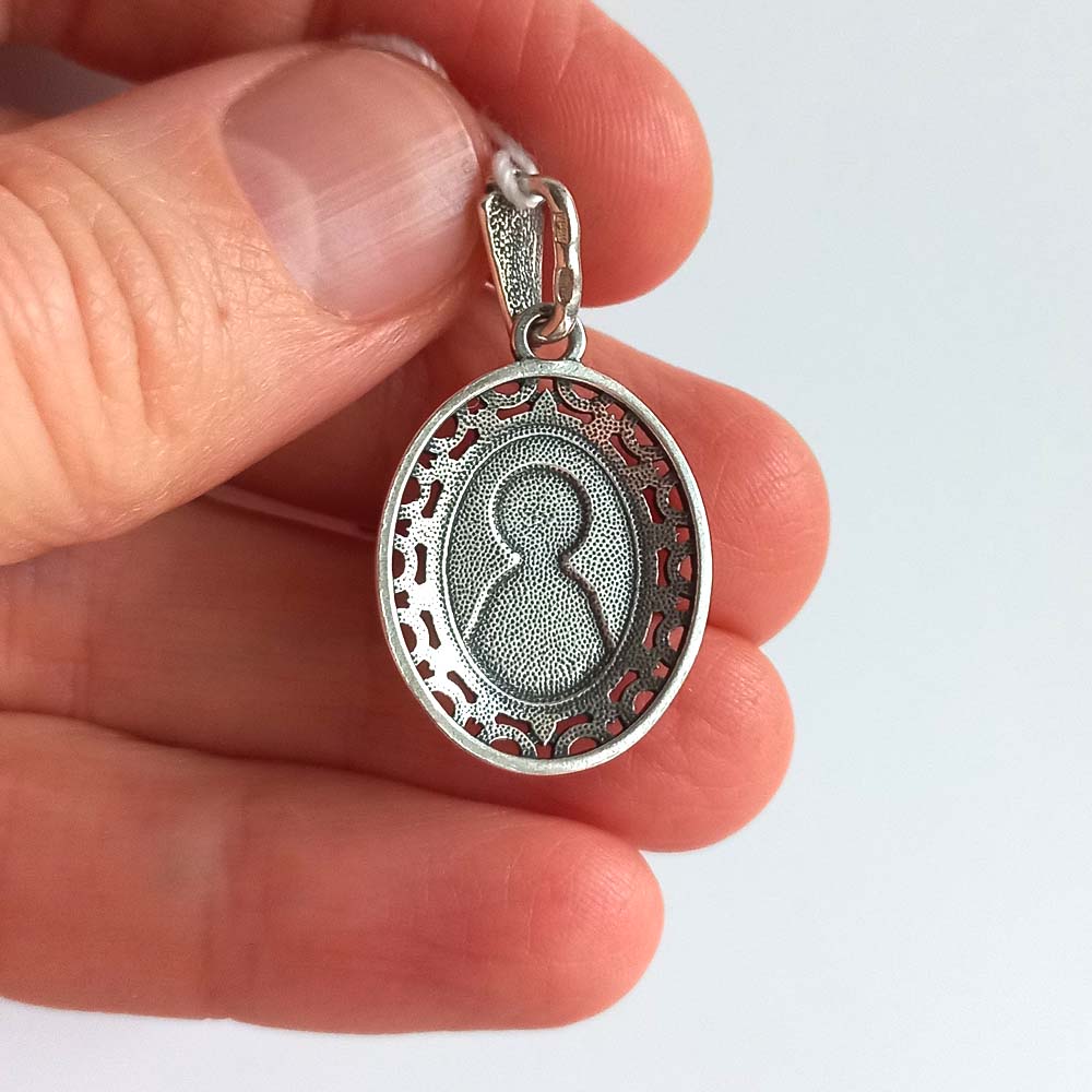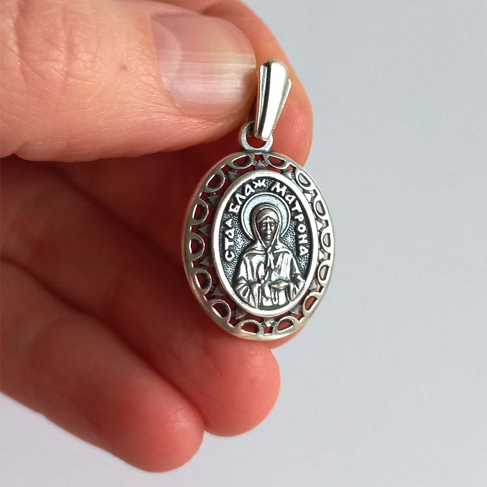 Иконка святая Матрона Московская (размер овала 22х18 мм) подвеска серебро с почернением без камней, арт. 16470