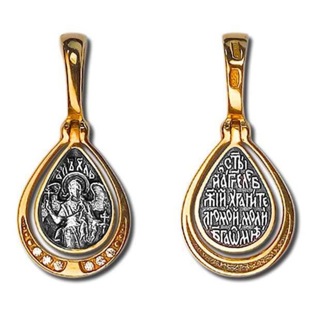Позолоченная подвеска Ангел Хранитель (размер иконки 13х17 мм) с фианитами, арт. 328578
