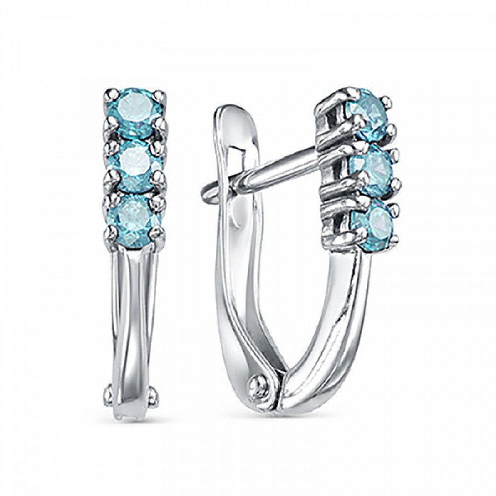 Серебряные серьги с голубыми фианитами. Артикул:25300
