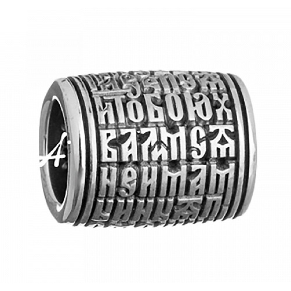 Серебряный шарм 299237 отрывок из молитвы к Пресвятой Богородице на церковнославянском языке: «Не имамы иныя помощи, не имамы иныя надежды, разве Тебе, Владычице, Ты нам помози, на Тебе на