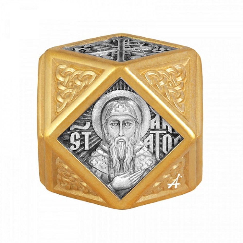 Подвеска шарм святой Анатолий с молитвой из серебра с позолотой на браслет, арт. 31605
